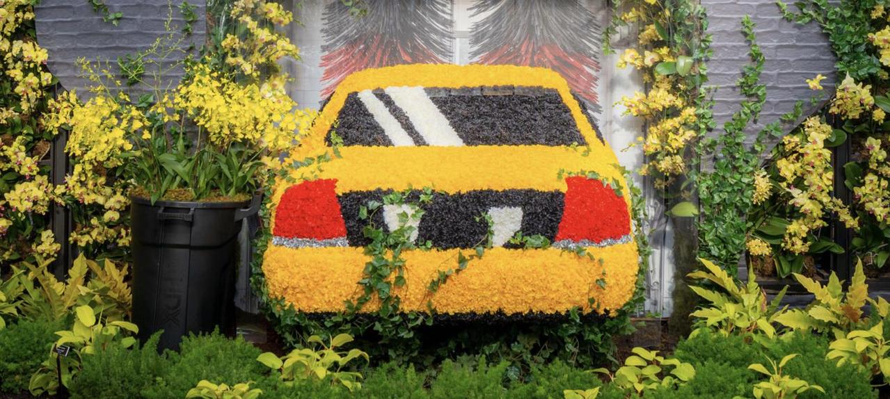 Mr. Flower Fantastic用兰花打造纽约市经典的黄色计程车。(取自纽约植物园)