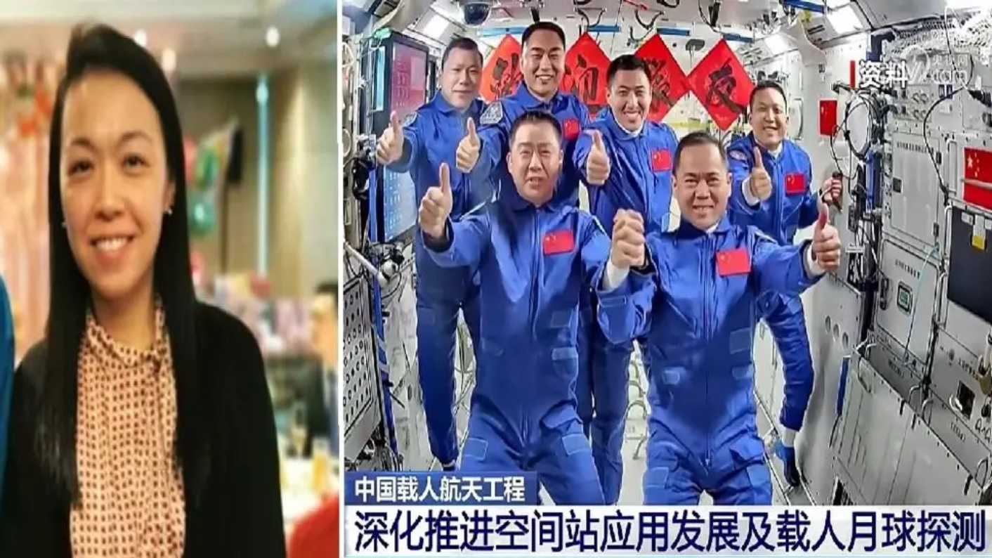 27.2 中国登月时间未受近月火箭升空失利影响,香港女警司黎家盈(图左)最快可望今年升空,日後可与中国宇航员一起在太空送回祝福。2026年2月27日 © CCTV直播截图及资料图片