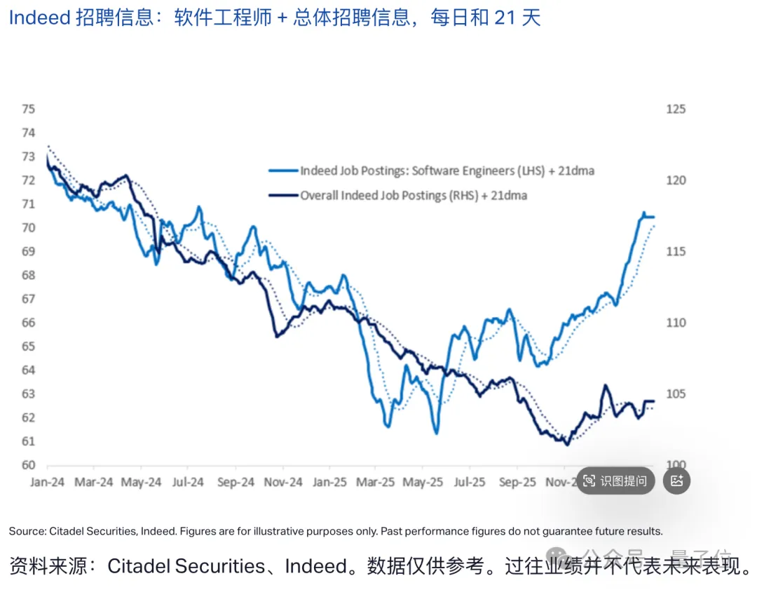 首先,Citrini认为像软件工程师这样的白领会被AI替代,但Citadel指出,现在软件工程师的需求其实是在增加的,其职位空缺同比增长11%。