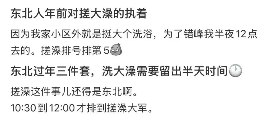 感觉大姨搓掉的不是我身上的灰,而是那层被职场搓磨的死皮,搓完一身轻,又成了开朗大方的东北孩子。”