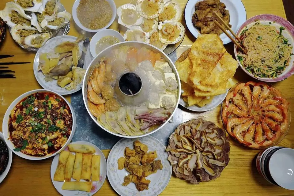 有人拿出了从老家带的大鱼大肉小海鲜,