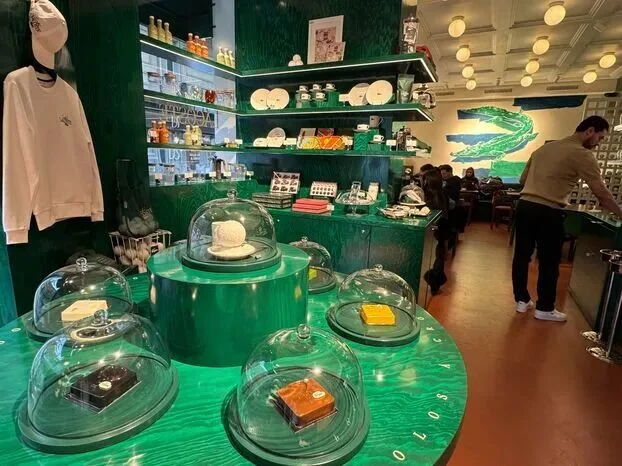 它的位置选得极妙,就在科利塞路的路角,距离其位于香榭丽舍大道的欧洲最大旗舰店仅仅250米。在那个充满了时尚气息与历史厚重感的街区,这间占地100平方米、拥有65个坐席的咖啡馆,正用一种全新的姿态向路人展示着“鳄鱼”的另一种生活方式。