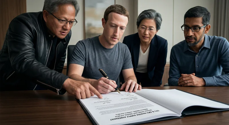 算力巨头排队与扎克伯格签字。图片由AI生成