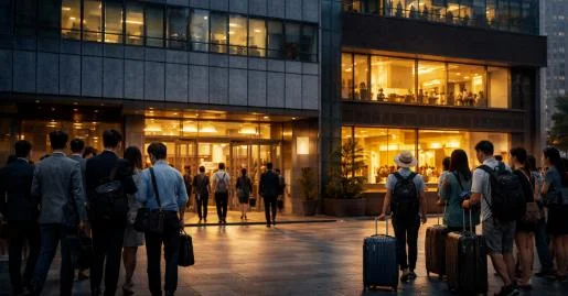 早高峰的时候,这种错位感更加具象,电梯口排成两条长龙,一队是拎着公文包、神色匆忙的上班族,另一队则是拖着大号行李箱、举着相机的游客。