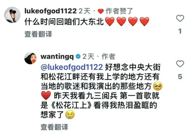 去年,她在回复网友什么时候回东北时,说怀念家乡。