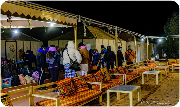 在大帐篷里匆匆吃完早饭,众人把行李放在指定地点(营地会派人把它们运出沙漠)。