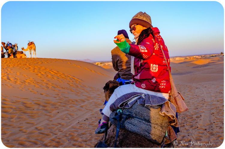 今天回程也是骑骆驼,我本以为骆驼队会在营地等我们,但被告知要徒步去骆驼过夜处找它们。