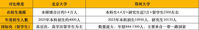 (北京大学和郑州大学的在校生规模、年度招生人数和国际化对比)北理工为什么排名飙升?它在无人机、新能源材料这些技术的民用转化方面做得风生水起,军民融合战略让它在“经济影响”维度超越了其他高校。同济的建筑、城市规划深度参与上海、雄安国家级项目,早就是城市发展的智囊团。深圳大学依托大湾区,数字经济、人工智能领域的创业孵化做得飞起。