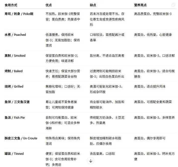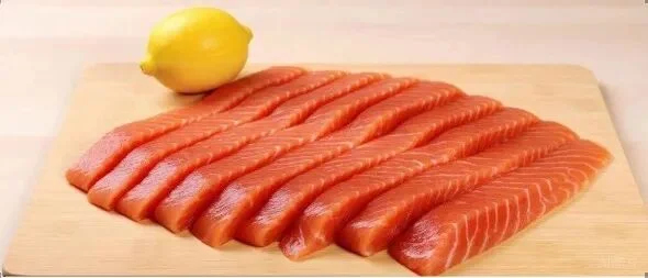 她指三文鱼的脂肪分布不均:腹部或中段通常脂肪较多;尾部则较瘦。因此尾部‘每卡路里蛋白质’可能略高,而中段或鱼片脂肪和欧米伽-3含量更高。