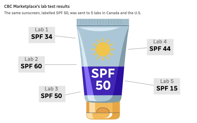 然而,CBC 著名栏目 Marketplace 最新一期调查结果却有点扎心:同一款防晒霜,送到不同实验室测,得出的 SPF 值居然能差这么多!