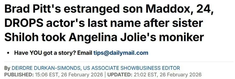 2026年2月,电影《高级定制》的片尾字幕滚动而过,有一个人的名字引起了人们的注意——马多克斯·朱莉(Maddox Jolie),而不是马多克斯·朱莉-皮特(Maddox Jolie-Pitt)。