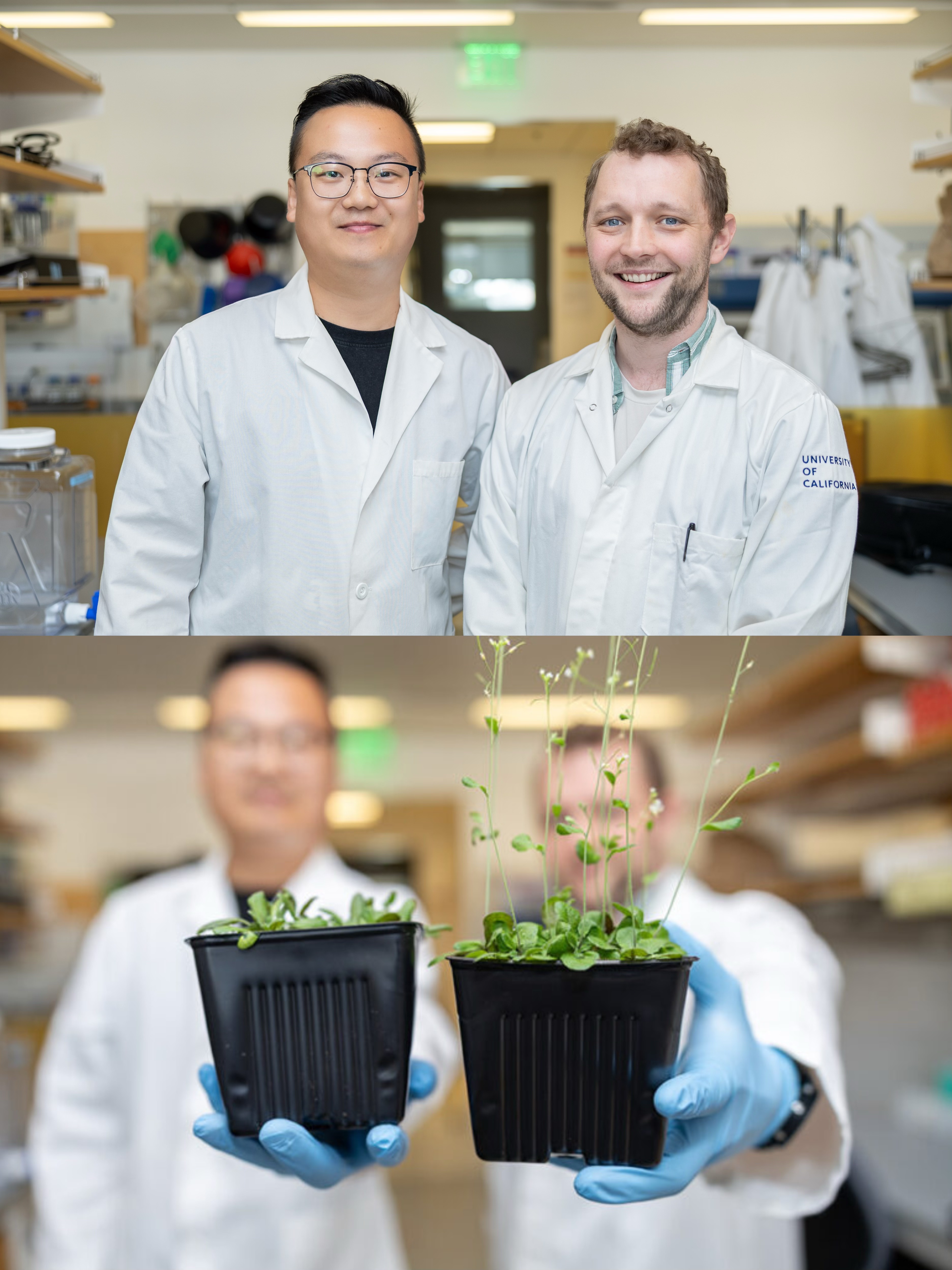 戴大伟与导师Ben Williams,他们手中的植物是拟南芥。