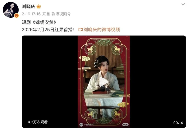 据悉,微短剧《锦绣安然》由刘晓庆、金珈领衔主演,以刺绣文化为背景,讲述了刘晓庆饰演的女主角苏婉清的传奇人生。