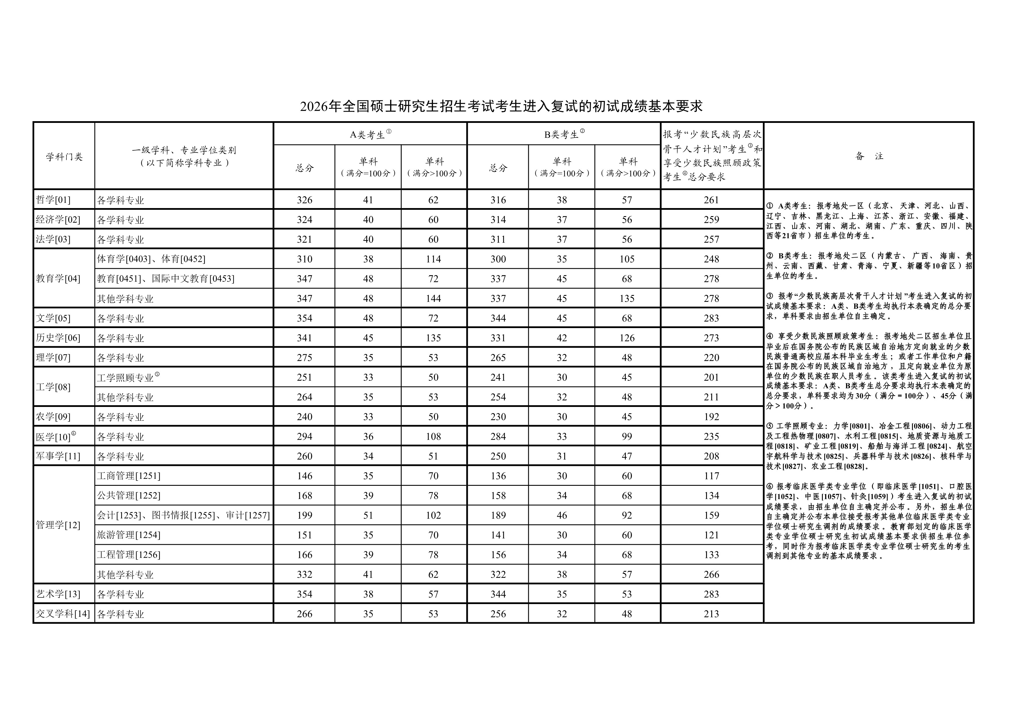 《2026年全国硕士研究生招生考试考生进入复试的初试成绩基本要求》(国家分数线)