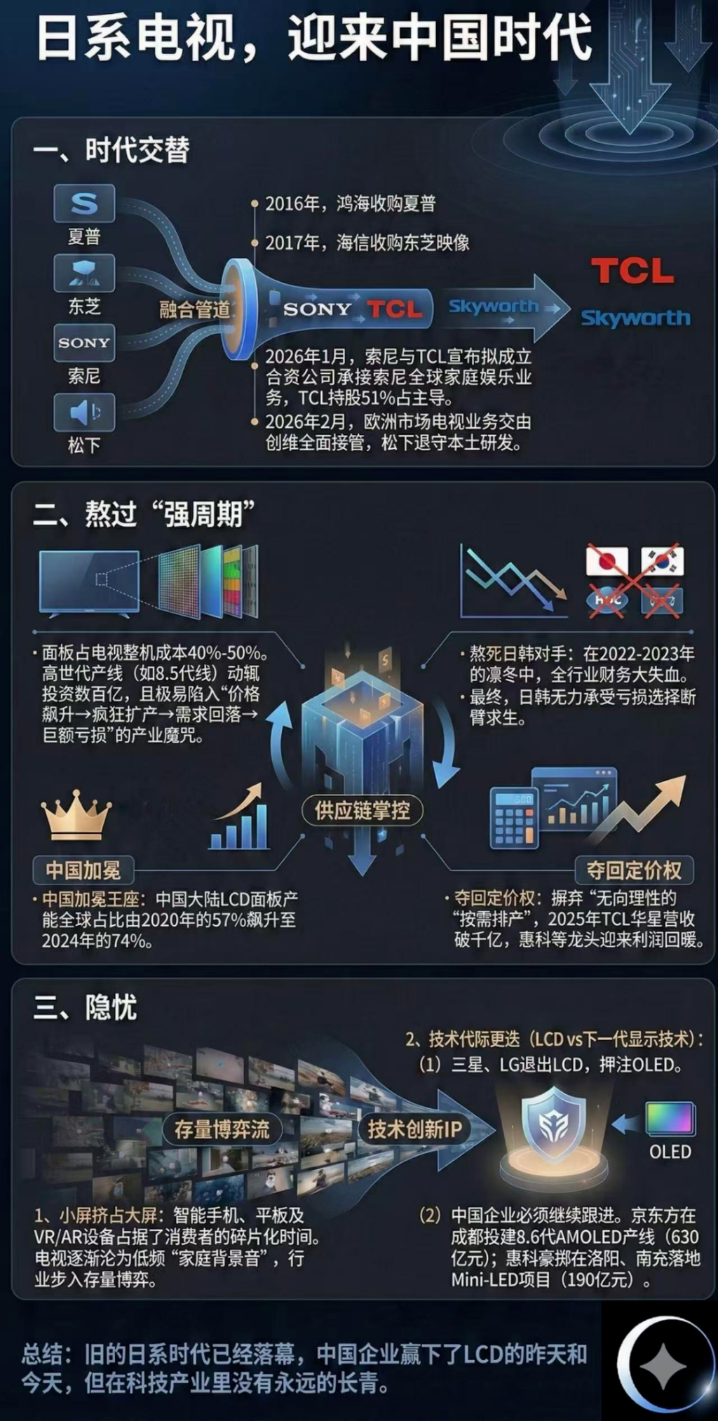 至此,曾经叱咤风云的日系电视四大巨头,已悉数被纳入中国厂商的产业协同版图。