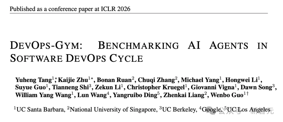 为填补这一空白,UCSB、NUS与Berkeley等联合团队提出了首个针对DevOps核心工作流(构建配置、监控、问题修复、测试生成)的端到端评估框架DevOps-Gym,不仅要评估 AI 「写」代码的能力,更要评估其「运维」和「治理」代码的能力。