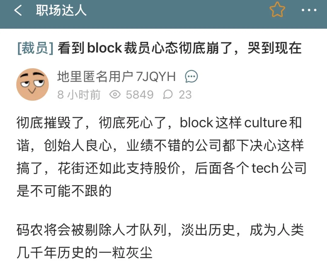 补偿方案在硅谷堪称慷慨:20周薪资加上每工作一年多一周的补偿,股权归属延续至5月底,6个月医疗保险,保留公司设备,并额外提供5000美元过渡补贴。海外员工也会获得符合当地法规的支持。Dorsey甚至表示,不会“把人从Slack和邮箱里悄悄删除”,沟通渠道会保留到周四晚,他会亲自开视频会道别,“宁愿显得尴尬而有人情味,也不愿高效而冰冷”。