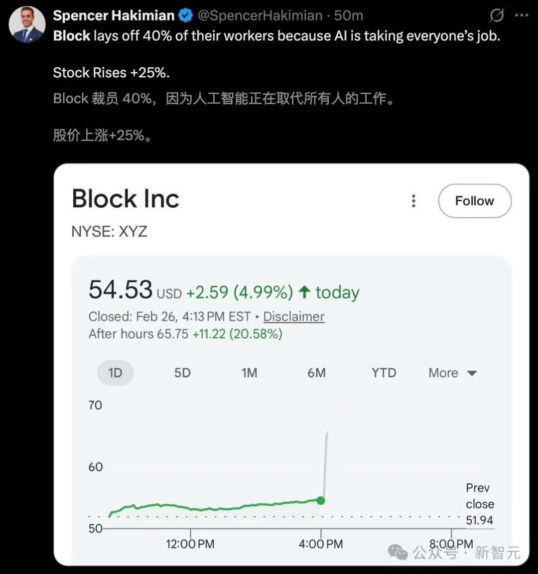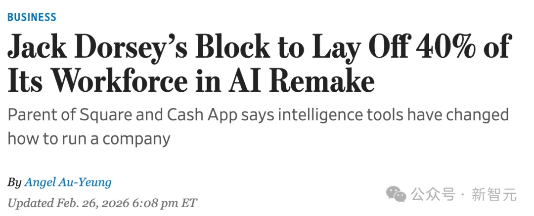 人类已无后路?今天,硅谷支付巨头Block暴裁40%员工,股价却疯涨25%。联创Jack Dorsey千字全员信:与其缓慢等死,不如用AI替代平庸打工人。