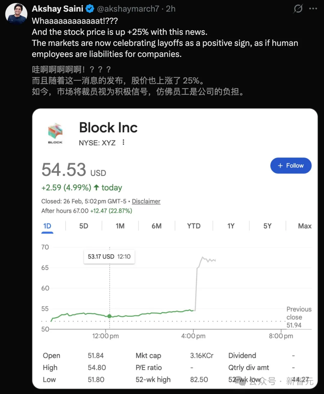 最离谱的是,对4000人痛下杀手后,Block的股价却在盘后疯狂飙升,涨幅一度超25%。