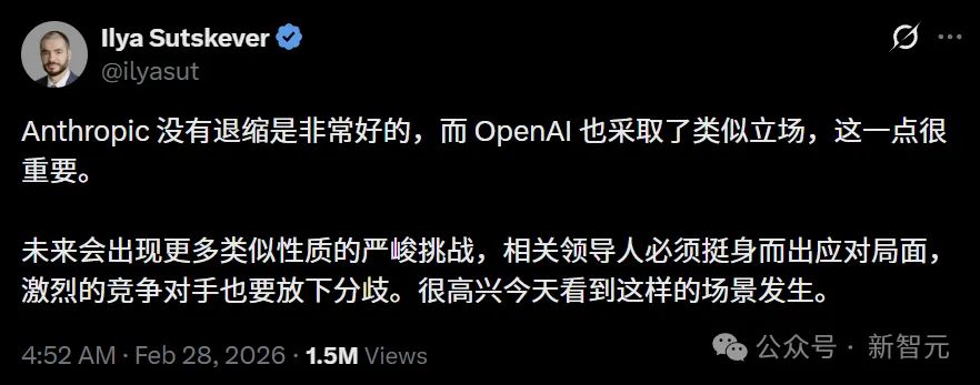 就连消失许久的Ilya Sutskever突然现身,公开点赞Anthropic、OpenAI:在关键问题上没有退缩极其难得。