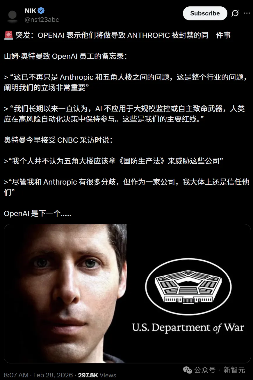 惊爆硅谷!Anthropic对五角大楼坚决说不,特朗普一言不合就拉黑。如今,OpenAI、谷歌600多名员工,以及Ilya、Jeff Dean大佬纷纷站队为其声援。