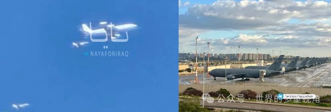 左边是今天被拍到的加油机,右边是开展前在以色列本古里安机场的美国空军加油机。