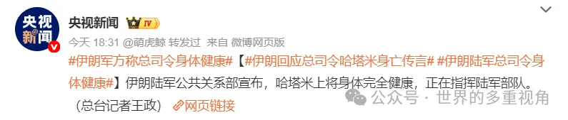 关于“伊朗陆军总司令被炸死”一事,目前是以色列单方面的报道,伊朗这边的说法是“司令还活着”。