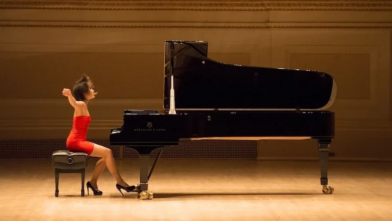 她不像那些传统的温婉优雅的女性钢琴家,穿着长裙,端庄登台。她的舞台形象,往往由超高的高跟鞋、超短的短裙、五颜六色的紧身裙、挑染的短发组成。与此同时,她的钢琴技术同样精湛,被《留声机》评为“史上最伟大的50位钢琴家”之一,也成为唯一斩获格莱美的华人钢琴家。