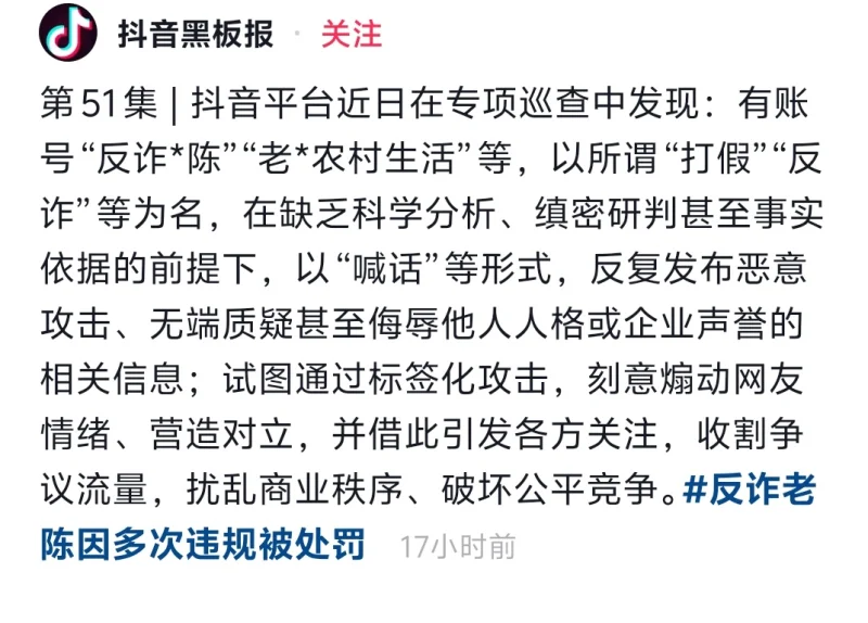 终于,在2026年2月27日,抖音官方一纸通报,对他作出了最严厉的处罚:永久封禁主账号,关闭所有变现功能,连关联小号也一并封杀。这不仅是流量的清零,更是终结了他的网红流量之路。