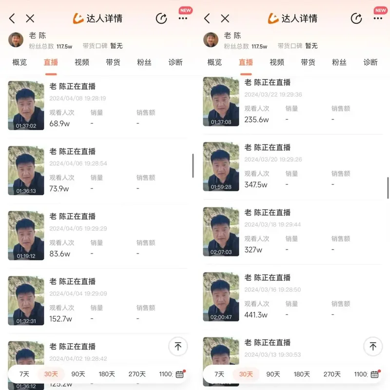 那时候的老陈,是真正的“清流”。他是警察,他就在做警察的事,平台给了他流量,国家给了他背书,大众给了他信任。结果呢?爆火出圈,顶流主播排队求连麦,只为蹭一波“正能量”,他的直播间动辄在线10万+,口号传遍大街小巷。