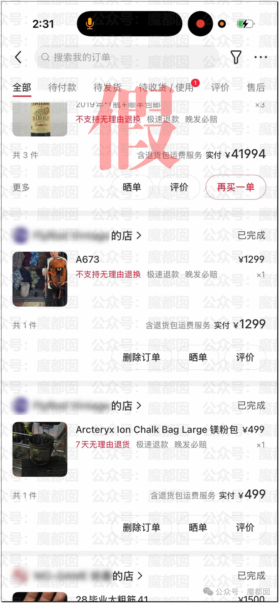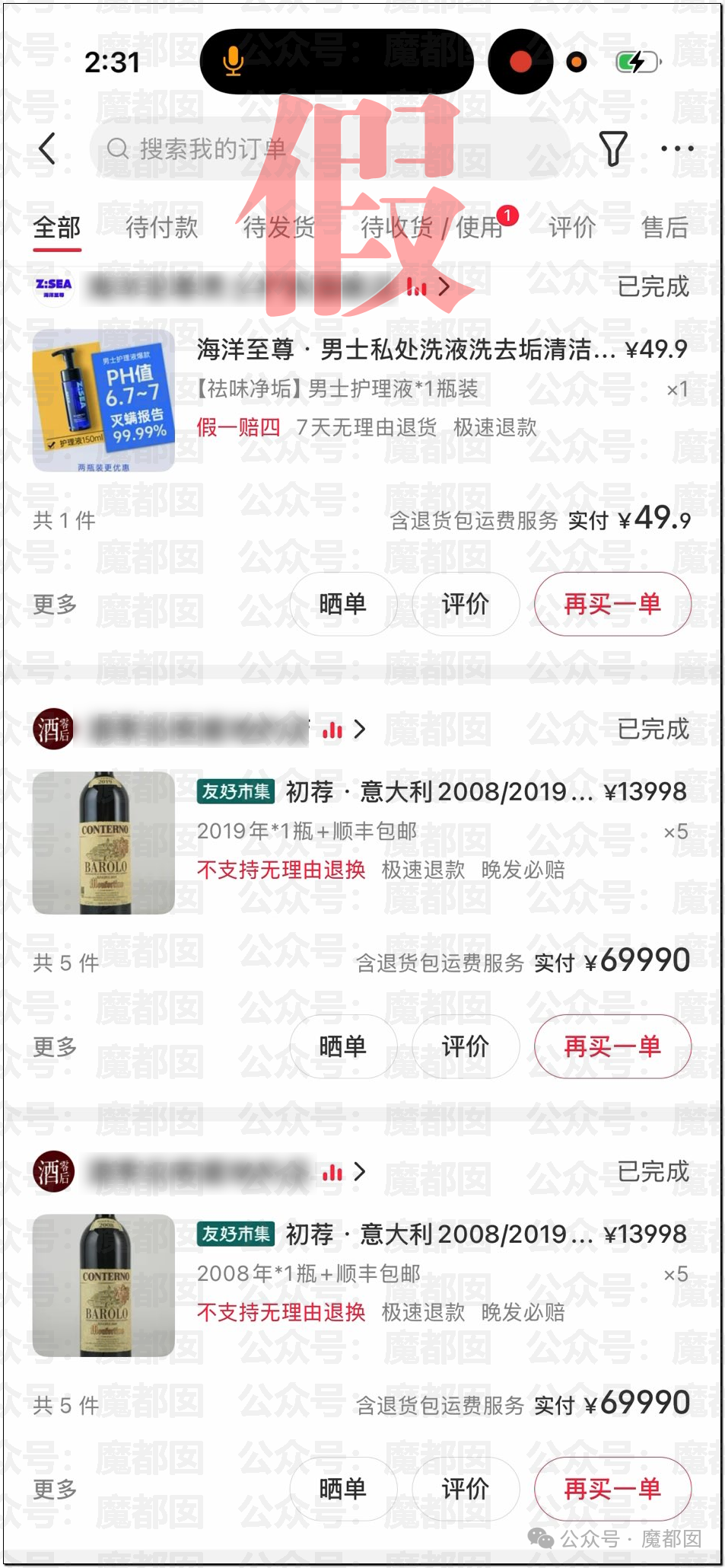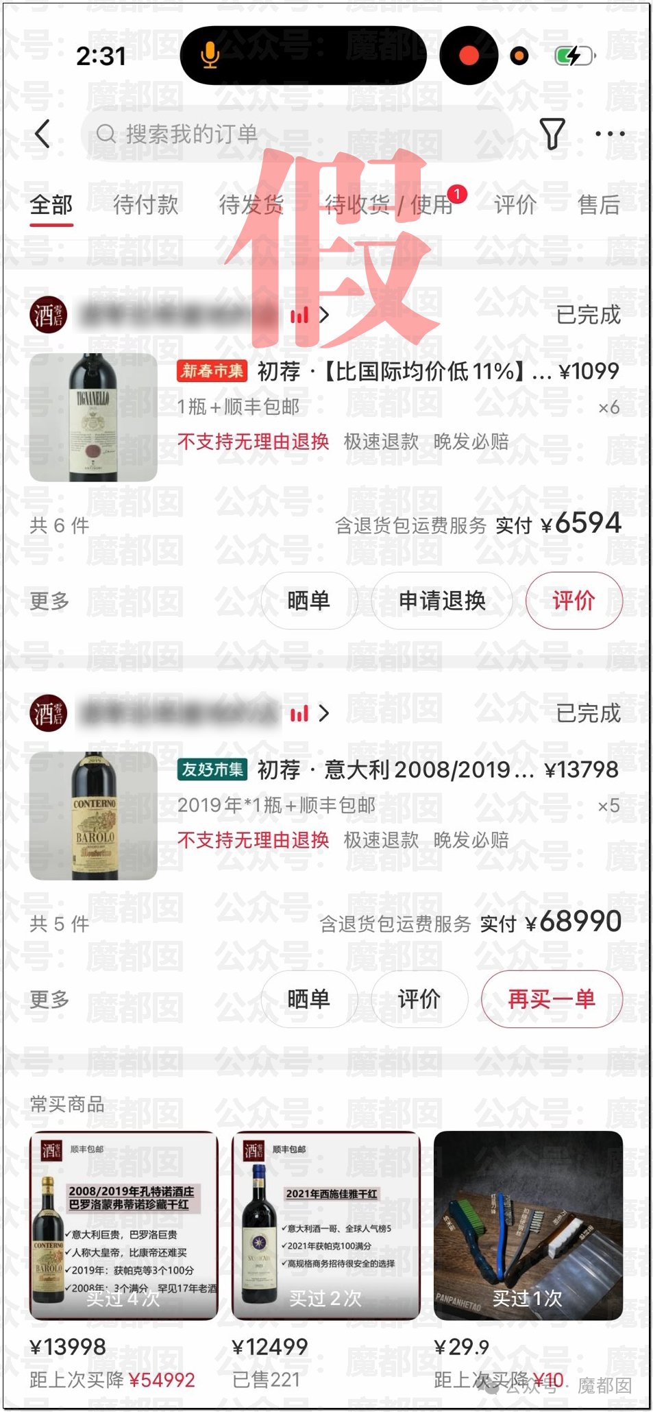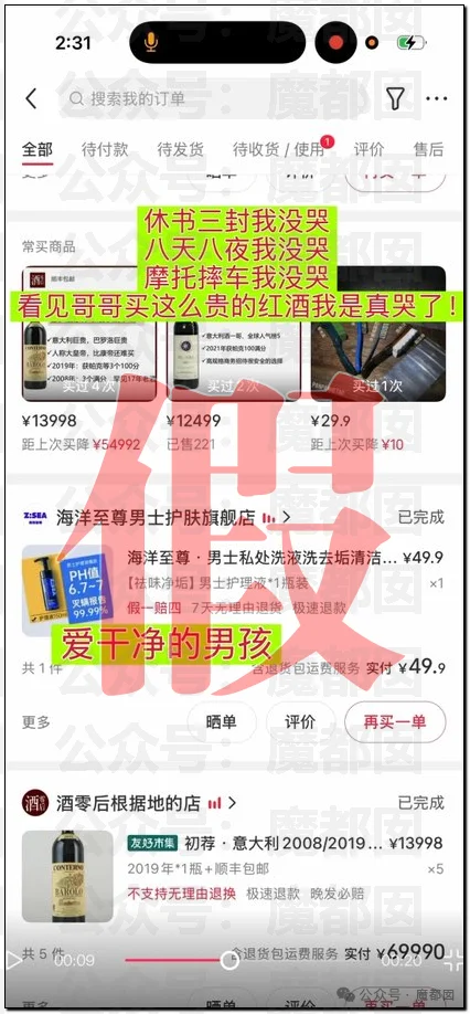 还爆料了买昂贵红酒的记录: