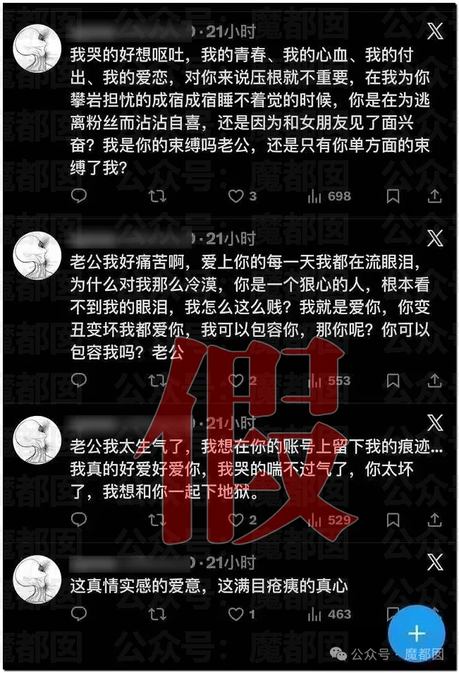 2、她是假的,纯造谣,不排除黑子、疯狂粉丝、精神病患者等情况。
