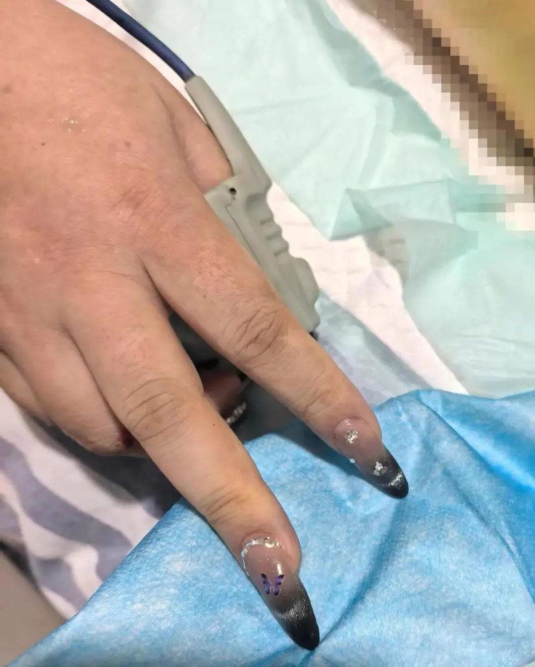 而此刻,一个谁都没想到的“拦路虎”出现了——小丽十指上那些闪亮夺目的美甲,竟让指脉氧仪彻底“失灵”,医生无法监测到她的血氧饱和度!