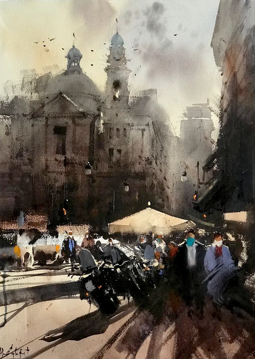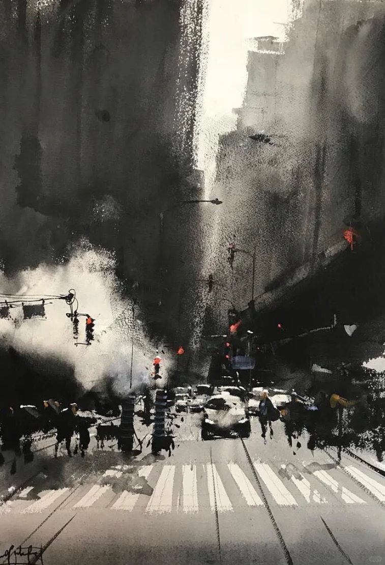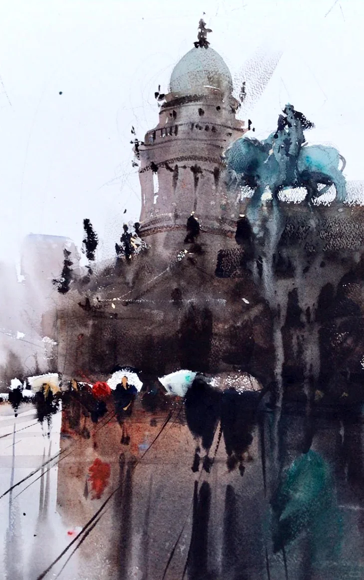 水彩作品欣赏——横涂纵抹,潇洒率性水彩名师
