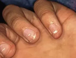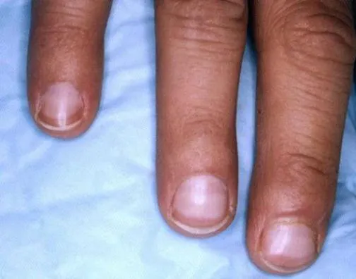 特里甲是指近端 80% 指甲是白色,而远端是正常的粉色,主要是因为甲床血液供应不足引起的。