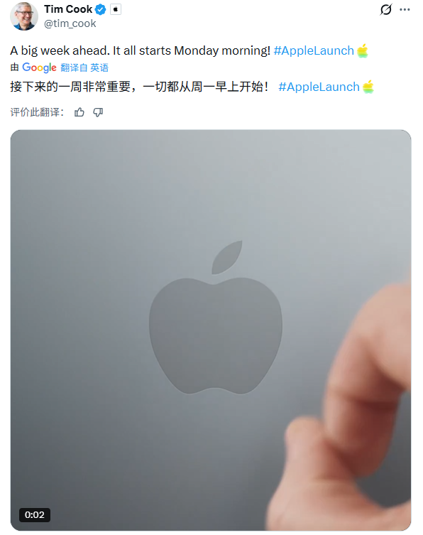 苹果罕见“周更发布”,库克亲自预告“下周大事不断”