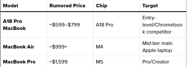 这款产品最早由分析师郭明錤在2025年6月提到,当时他预测苹果将推出一款新的低成本MacBook,与Chromebook和Windows笔记本电脑在平价市场竞争。