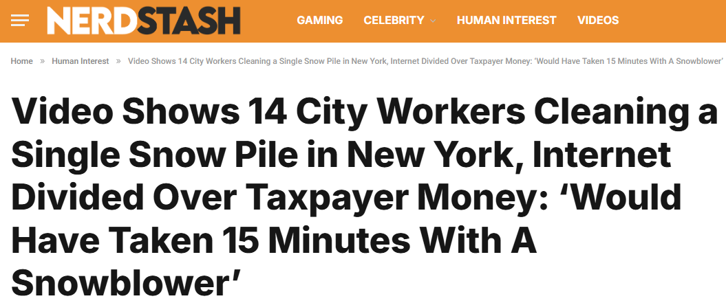 纽约铲雪视频引争议:太浪费TheNerdStash
