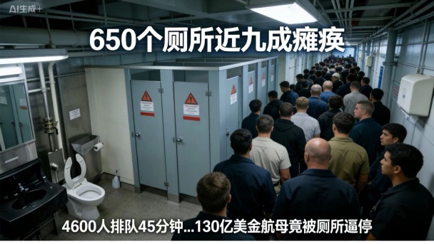 按军事实力,美军可以对伊朗降维打击,最先进的福特号航母搭载约44架F/A-18战斗机,配备提康德罗加级巡洋舰、伯克级驱逐舰等护航舰艇,两个航母打击群一周时间就能重创或摧毁伊朗关键战略目标,这是一场没有悬念的战争。万事俱备只欠东风,偏偏“东风不与航母便,如厕憋死前列腺”,福特号航母的厕所系统出了问题,4600名官兵的排便通道堵塞了。福特号航母抵达中东准备参战打伊朗不久,其厕所系统便出现严重故障。据说问题根源在于设计阶段的重大失误:不仅为4600名舰员配置的卫生间数量严重不足,导致舰员每天需排队45分钟才能使用厕所,而且工程师安装的真空排污系统极为脆弱,单个阀门故障就可能导致整片区域的卫生间瘫痪并持续恶化。除非返回美国本土船坞或者海外基地,否则几乎不可能彻底修复这一系统。福特号计有650个蹲位,舰上平均近8人1个。但是这次厕所系统的下水道因设计原因被堵住近9成,瞬间变成平均80人一个了。据说舰员上厕所动辄要排队40-50分钟。内部邮件显示舰长曾4天内接到205次维修呼叫,工程兵维修兵每天工作19小时仍难以维持。彻底修复如酸洗管道除钙除杂需在港口进行,每次成本至少40万美元并且无法在运动部署中实施。如果解决不了厕所困境就与伊朗开战,飞行员及其他战斗人员无法在大腹便便的鼓胀状态下执行任务。一分钱难死英雄汉,一泡屎难死飞行员。