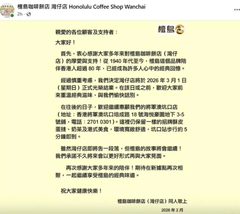 这家屹立香港超过八十载的传奇老店,终究没能逃过时代的浪潮,正式宣布将于3月1日光荣结业。