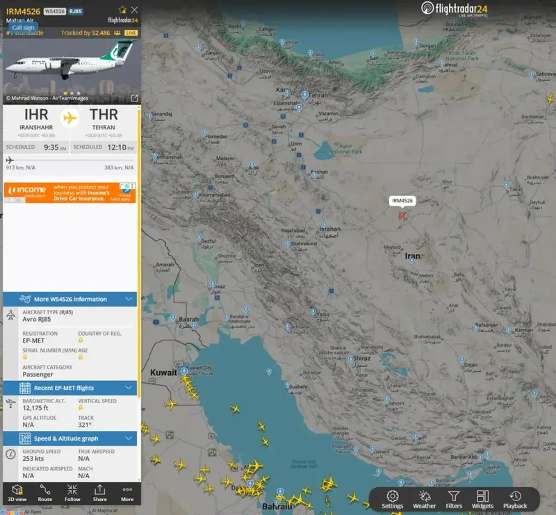极目新闻记者注意到,在航班查询网站flightradar24上,从伊朗沙赫尔飞往德黑兰的马汉航空IRM4526次航班位居搜索榜榜首,此次航班于北京时间14时05分起飞,计划于北京时间16时40分降落。但截至发稿时,IRM4526次航班已查询不到。