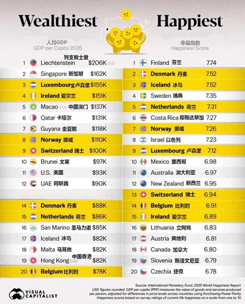 全球最富裕vs最幸福国家:钱买不来幸福?格隆汇