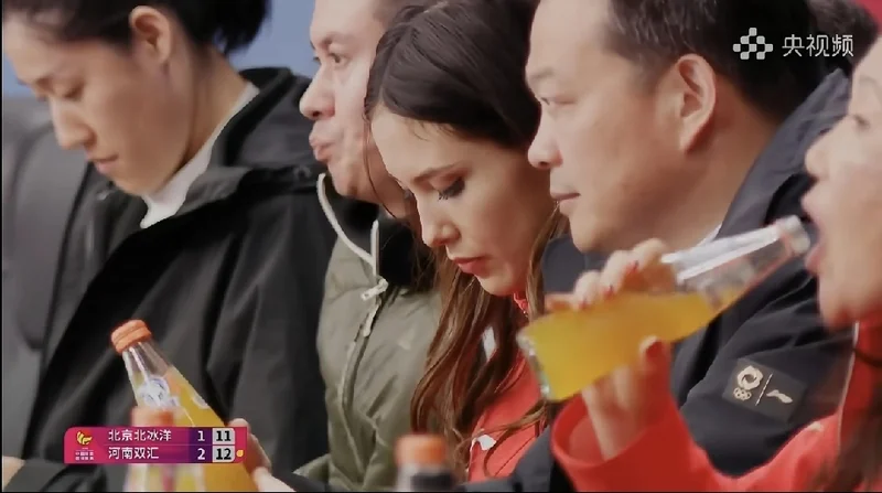 谷爱凌听到母亲的指示,肯定是微微一笑,立马抬头,中间有工作人员跟谷爱凌互动,旁边的谷燕连忙接上话,拿着汽水比划。