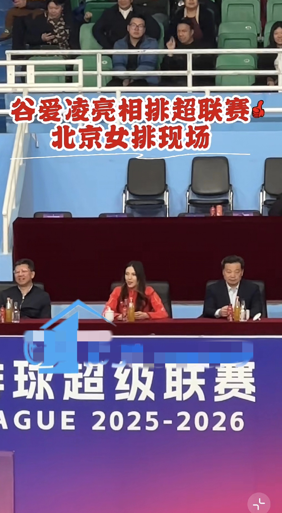 本次举办的是中国女子排球超级联赛,谷爱凌是滑雪冠军受邀参加,母亲谷燕陪同,两位坐在第1排中间的位置格外亮眼。