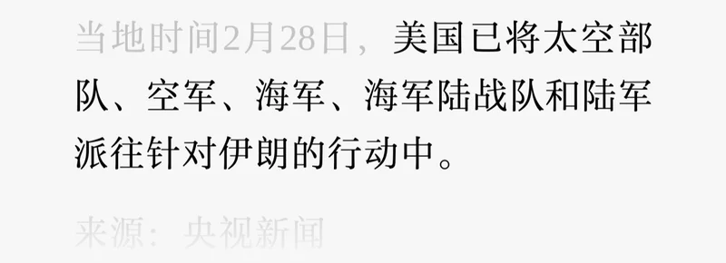 一行简单的新闻,却宣告了历史的刷新:美军正式宣布,将太空部队全面投入对伊朗的军事打击行动。这不是以往战争里的辅助支援,是人类历史上,太空部队作为独立军种,首次正式参与实战(此前也有参与,但都是零散的)。