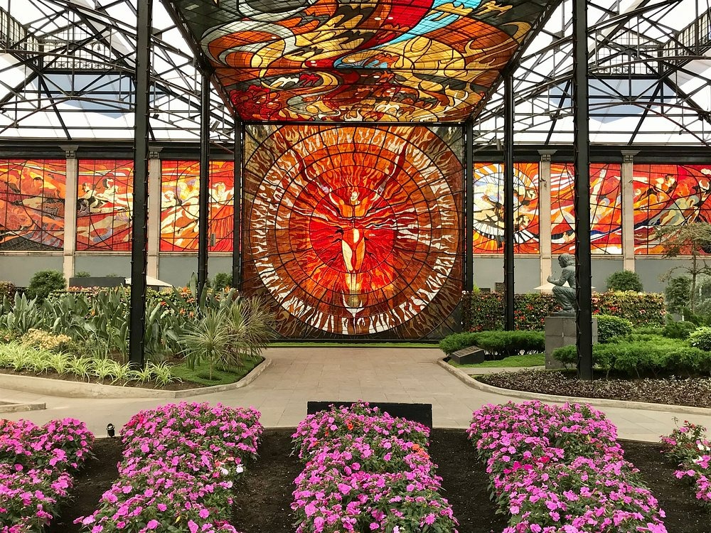 上期说到,快乐的司机小哥一路“飙车”把我们带到了城里。下车便到了当地最著名的景点——Cosmovitral 植物园。植物园的外墙及顶棚环绕着一圈壮观的**彩绘玻璃(Stained Glass)**巨型壁画。