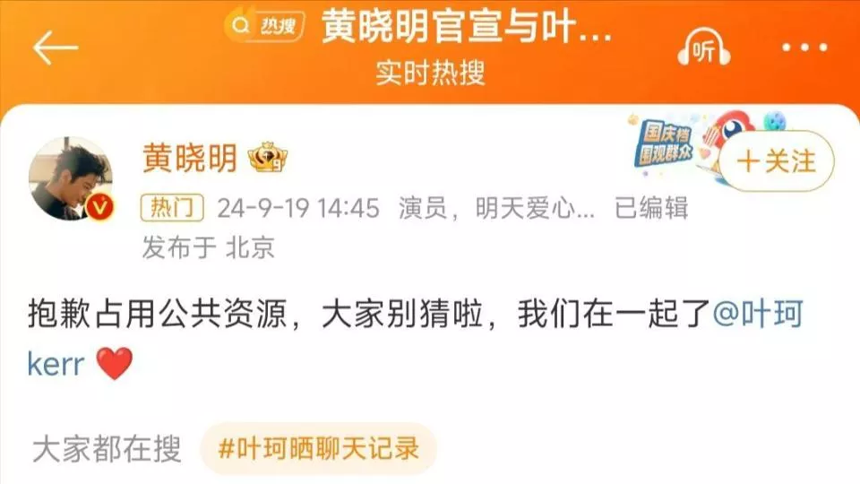 一个胡彦斌、一个林俊杰,如今黄晓明又来。