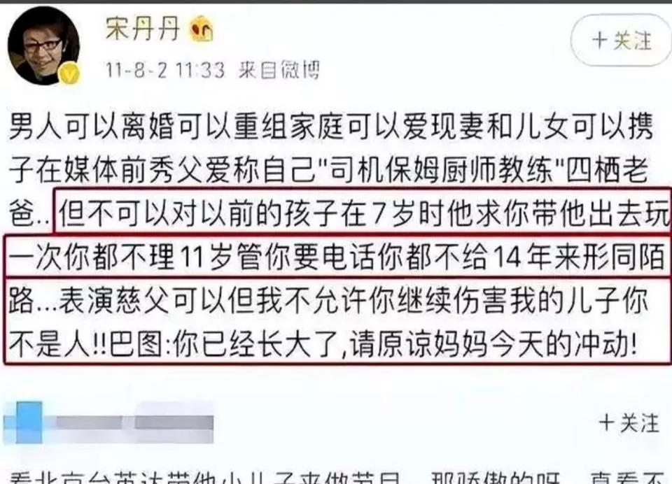 时间倒回1997年,宋丹丹和英达的婚姻走到尽头,7岁的巴图跟着妈妈。 英达转身就娶了编剧梁欢,很快有了小儿子英如镝。从那天起,“爸爸”这个词对巴图来说,就成了电话里永远的忙音。