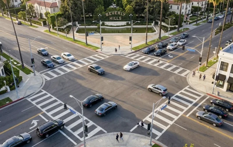 Beverly Hills 的六叉路口:复杂的停车逻辑让老司机也感到怀疑人生。