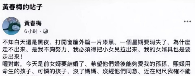 这一切变化,让S妈黄春梅的处境显得格外复杂。 在忌日仪式上,她情绪崩溃,紧紧依靠着女婿具俊晔。 但有网络文章指出,她对具俊晔可能长期留在韩国、无法依靠其养老送终感到深深的恐惧和悲哀。 大S离世后,她一度被传为了保住女儿遗产聘请律师团队,不过很快被她本人和小S否认。 如今,女婿回了韩国,两个外孙被接到北京,曾经热闹非凡的S家,一下子变得格外安静。